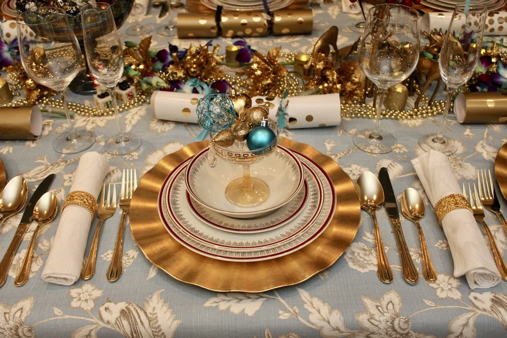 Christmas Table Decorations Elegant Gold Aqua Dining Room